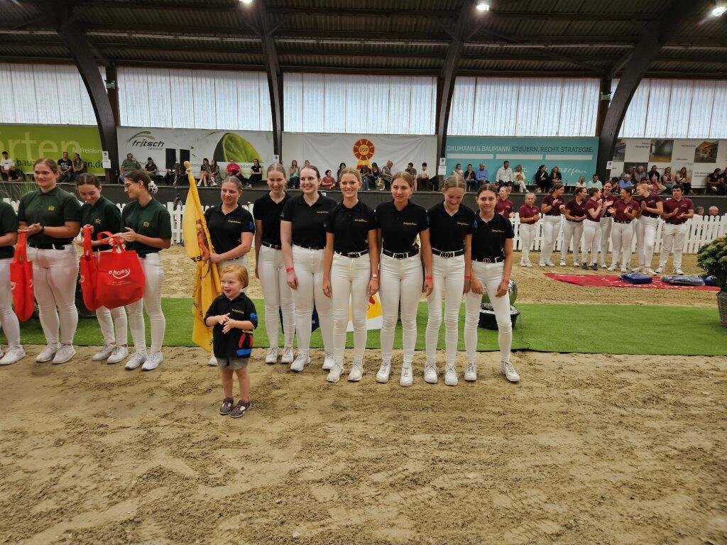 Am vergangenen Wochenende fand im Rahmen des DSP-Herbstfestivals mit Fohlenauktion und Stutenchampionat der 2. Jungzüchter DSP-Wettbewerb in Darmstadt statt. 5 DSP-Verbände traten gegeneinander an. Am Freitagmittag ging es nach der Begrüßung sofort mit der Theorie los. Danach wurde das Exterieur Linear bewertet und alle Jungzüchter musterten noch unter den Fachkunden Augen der Richter vor. Bei einem gemeinsamen Grillabend klang der erste Abend aus. Am Samstag stand dann noch das Freispringen an. Hierzu dienten die Stuten, die am DSP-Wettbewerb teilnahmen.