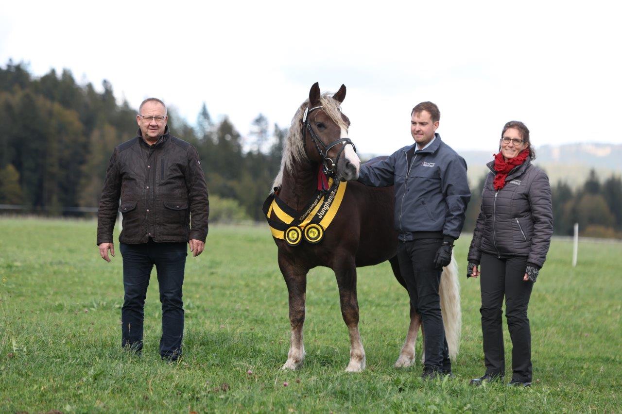 Auch in diesem Jahr stellte das Haupt- und Landgestüt Marbach den Körungssieger. Der von Melanie Hug gezüchtete und vom Haupt- und Landgestüt Marbach ausgestellte Findus von Falkenstein aus der Alisa von LVV Modem überzeugte die Körkommission am meisten. Verbandspräsident Edwin Schuster würdigte den Körungssieger im Rahmen des gelungenen Schauabends und zeichnete die Züchterin Melanie Hug mit der FN-Plakette in Silber, den Hengst mit Siegerschärpe und Junghengstprämie aus. Dr Carolin Eiberger, stellvertretende Gestütsleiterin freute sich über ihren tollen Hengst und den Ehrenpreis. Katrin Mäder aus St. Märgen stellte mit Rio von Rodewald, Körungssieger seines Jahrgangs und der früheren Bundessiegerstute und bundesprämierten StPr./LSt. Ilona von Federsee den Reservesieger, der ebenfalls als Prämienhengst herausgestellt wurde. Er zeigte sich mit viel Rasseadel und guter Dreiteilung. Seine gute Körperkonstruktion setzt er in groß übersetzte Bewegungen in allen drei Grundgangarten um. Er wurde im Schauabend mit Schärpe, die Züchterin mit dem Ehrenpreis ausgezeichnet.Erstmals stellten sich zwei Rappen der Bewertungskommission, die den kalibrigen lackschwarzen von Hubert Winterhalter gezüchteten und vom Haupt- und Landgestüt Marbach vorgestellten Rabenstein von Ramos aus der LSt. Fiona von Respekt mit einem positiven Körergebnis belohnten. Er hatte seine Vorzüge in der gut übersetzten Trabbewegung. Ein positives Körergebnis erhielten auch die Schwarzwälder Junghengste Dumbledore aus dem ersten Jahrgang des Dachsstein aus der Zucht und dem Besitz der ZG Müller/Escher; Wilfrodo von Wellenstein aus der Zucht von Werner Schultheiss und im Besitz der ZG Leichtenstern und Dorino von Dagobert aus der Zucht von Christina Laubis und im Besitz von Sebastian Lemberger sowie der vierjährige Freiberger Camino von der Erbsmatt v. Canto von Zälg von Lara Traber und Rocco vom Bilgerhof, Sohn des HLP-Siegers Rune v.d. Doore Plas aus dem Zuchtstall Robert Pritzi für das Zuchtprogramm des Rheinisch-Deutschen Kaltbluts.