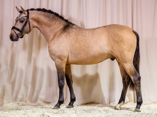 13 der Ponys wurden verkauft, dies entspricht einer Verkaufsquote von 77%, der Gesamtumsatz betrug 101.300,00€. Der Durchschnittspreis betrug 7.792,00€, Auslandsverkäufe nach Belgien und Dänemark wurden realisiert. Zur Preisspitze avancierte mit 14.000,00€ die Auktionsnummer 1, der gekörte Weser-Emser Falbhengst Dalton AT. Der Hengst stammt ab von Dating Point AT / Dance Star AT NRW und wurde gezogen und ausgestellt von AT Schurf aus dem rheinischen Bedburg. Der bewegungs- und typstarke Hengst wird zukünftig in Belgien beheimatet sein und auf eine Karriere im Dressurviereck vorbereitet. Für 10.000,00€ wechselte die Nachwuchshoffnung Blütenzauber F den Besitz. Die gangstarke Fuchsstute von Neverland / FS Cracker Jack aus der Zucht von Ludger Fühner aus Seevelten wird in Zukunft bei einer jungen erwachsenen Reiterin aus Schleswig-Holstein beheimatet sein. In ihrer erfolgreichen Ponyzeit ritt diese junge Dame schon einmal ein Ponyforum-Pony - wir drücken die Daumen für einen ähnlich erfolgreichen Weg! Der ausgesprochen unkomplizierte Palominowallach Djumanji, abstammend von Kastanienhof Donnertrommler / Casino Royal, wurde für 8.900,00€ verkauft. Der 2020 geborene Wallach wurde im hannoverschen Zuchtgebiet gezogen von Melanie Schierholz, er wird nun bei Stammkunden in Norddeutschland Zuhause sein.