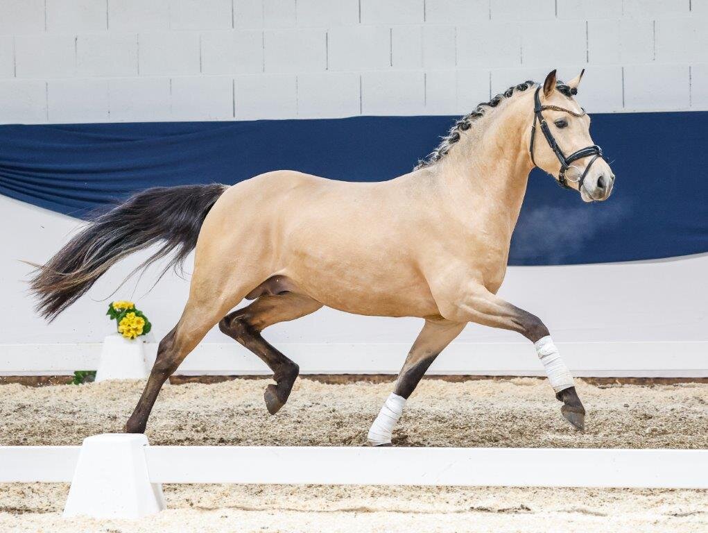Das Kundeninteresse war riesig und das Team der Ponyforum GmbH begrüßte zahlreiche Kunden im Vermarktungszentrum, die sich die Youngster live präsentieren ließen. Erfreulich viele dieser Kunden entschieden sich im Anschluss für eines der Ponys. Drei Youngster erzielten Verkaufspreise von 10.000,00€ und mehr! Der gekörte dreijährige gekörte Falbhengst Cool Breeze, abstammend von Charmeur - Benedict aus der Zucht von Susanne Olnhoff aus dem Zuchtgebiet Brandenburg-Anhalt, wurde zum Spitzenpreis von 11.000,00€ an Stammkunden aus Baden-Württemberg verkauft. Hier wird er zukünftig als Dressurpony ausgebildet. Zu denselben Kunden wird der ebenfalls dreijährige Hengst Dave IT wechseln, ein auffälliger Falbe von Dating AT NRW - Valido aus der rheinischen Zucht von Ingrid Thissen. Er erzielte einen Zuschlagspreis von 10.000,00€. Ebenfalls für 10.000,00€ wurde die 154cm große Stute Valerie KHR aus der Zucht von Karl Henning Rollwage zugeschlagen. Die doppelt veranlagte hannoversche Tochter des Vagabond aus einer Mutter von Perigeux wird zukünftig bei einer Familie aus Westfalen beheimatet sein und als Springpony ausgebildet werden. Mit Daisys Deluxe Moment wurde eine dreijährige XL Stute aus dem Zuchtgebiet Schleswig Holstein für 9.000,00€ verkauft. Die schöne Palominostute stammt ab von Petit Rock the moment - Diamond Touch NRW und wurde gezogen von Anke Kolvenbach. Sie wird nach Bayern umziehen. Der dreijährige Palominowallach Der Goldchampion von D-Gold AT NRW - Top Champy aus der westfälischen Zucht von Bernhard Deitert wurde für 9.200,00€ an eine Stammkundin aus Hessen verkauft. Sie erkannte das überragende Potential der Nummer 1 der Kollektion und wird das Pony unter dem Sattel fördern lassen. Der XL Cremellohengst Newlands Giotto von Genesis BL - FS Coco Jambo, gezogen von Familie Olsson aus Schleswig-Holstein, erzielte 8.900,00€. Er wechselt nach Westfalen zu einer Dressurausbilderin! 8.500,00€ Zuschlagspreis erzielte die vierjährige Fuchsstute Namira von Can Dance - Thriantas Norbert aus der hessischen Zucht des Kastanienhofs Eifa. Sie verbleibt in Hessen und hat ein neues Zuhause bei einer jungen erwachsenen Reiterin gefunden.