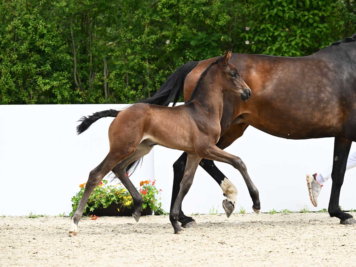 Zwei weitere Fohlen knackten die 10.000-Euro-Grenze: Für 12.000 Euro wurde ein Stutfohlen vom DSP-Mastershengst Vingino aus der Zucht von Sabine Reisenauer in Uhingen zugeschlagen. Schon die Mutter des Fohlens, Casall-Tochter Coeur du soleil S war einst DSP-Auktionsfohlen. 11.500 Euro wurden für einen Sohn des aktuell für das Bundeschampionat qualifizierten Be my Dancer aus der Zucht von Jakob und Martina Reglauer aus dem nahe gelegenen Starnberg erzielt. Seine Mutter, DSP-Championesse der Vierjährigen 2013, vertritt einen DSP-Stamm, der zahlreiche bis Grand-Prix-Niveau erfolgreiche Sportpferde hervorbrachte.