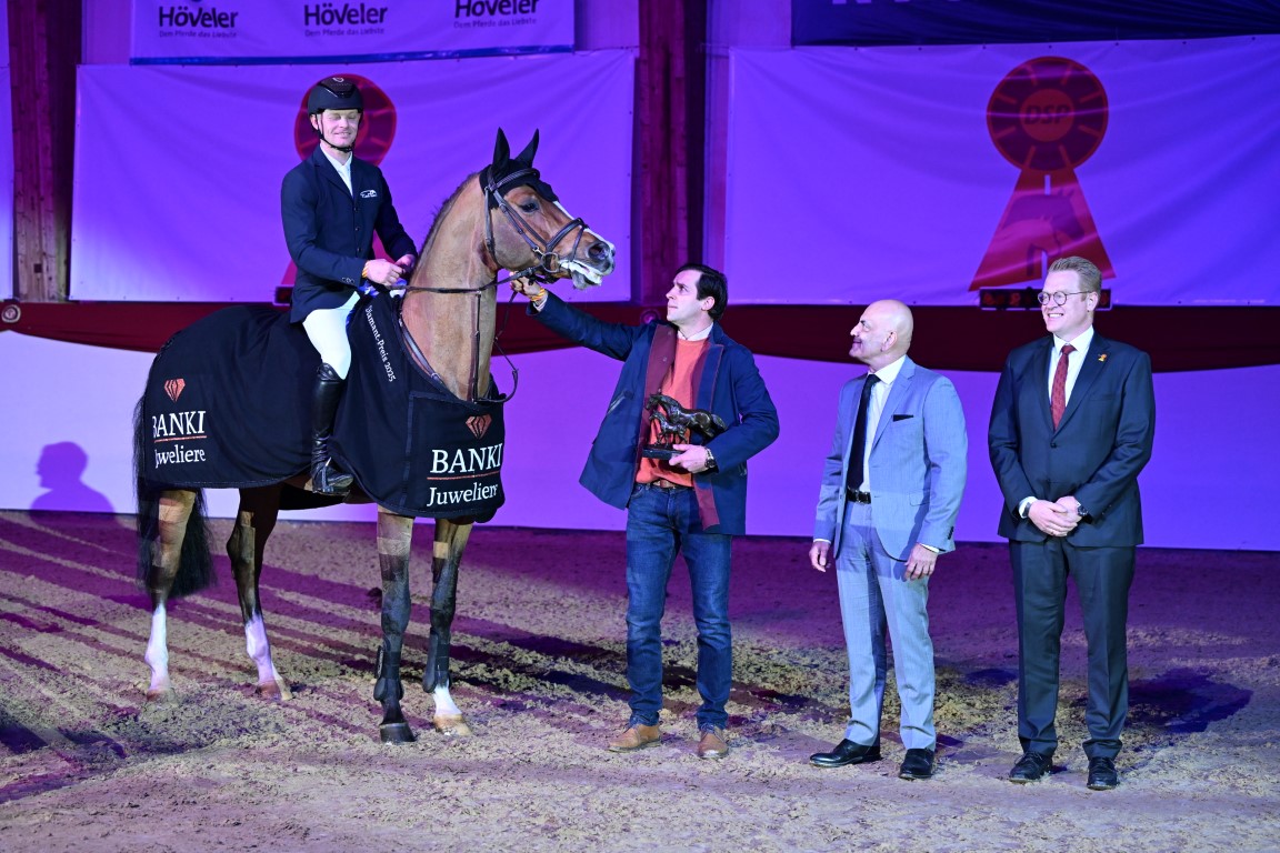 Auch eine weitere Auszeichnung des DSP wird nur einmal jährlich vergeben: der von Banki Juweliere gesponserte Diamant-Preis. Ihn erhält der Züchter des bei einer DSP-Körung gekörten, nach Ranglistenpunkten erfolgreichsten in der vergangenen Saison siebenjährigen Springhengstes. Und auch auf dieser Liste stehen bekannte Namen: Quadrigus M beispielsweise, FST Dipylon, Question d’Honneur, Colestus, Sakrileg, Quite’s Prince, Coffee, Cookie, Aachen-Sieger Stargold, Cullinan du Borget B und Nombrado. Nun reiht sich Askapino in diese Riege ein.