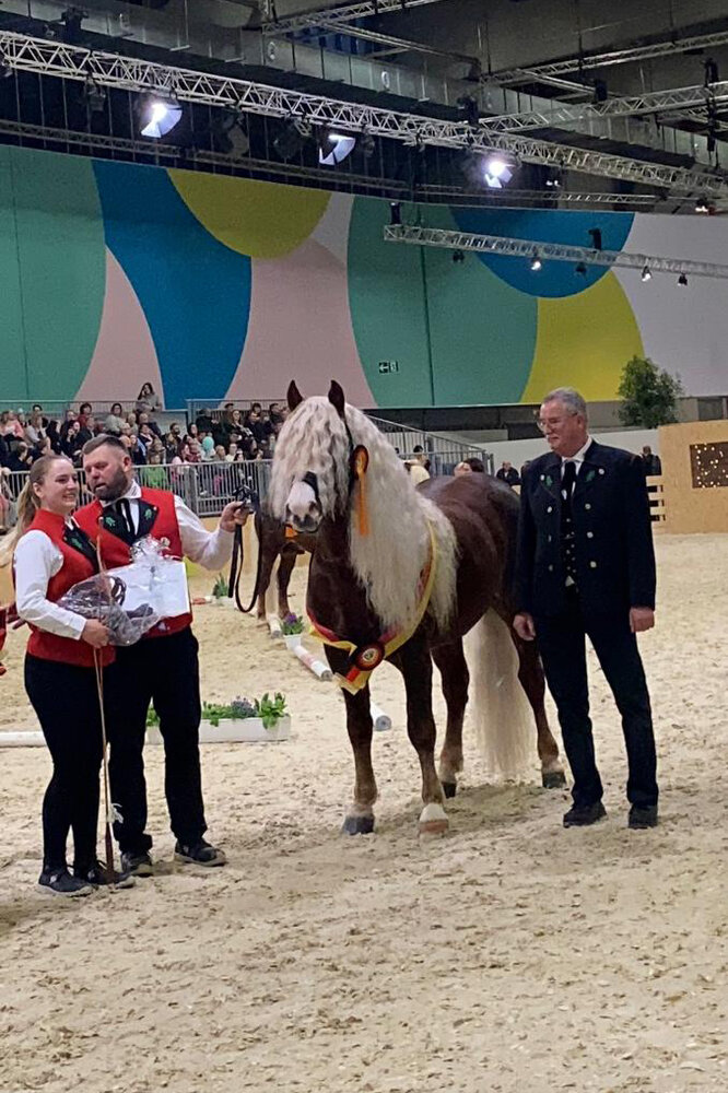 Gesamtsiegerhengst der Schwarzwälder Kaltbluthengste und Bundesprämienhengst WALDSEE von Weissenbach - Riemer; Z./B.: Roland und Birgit Finsterwald