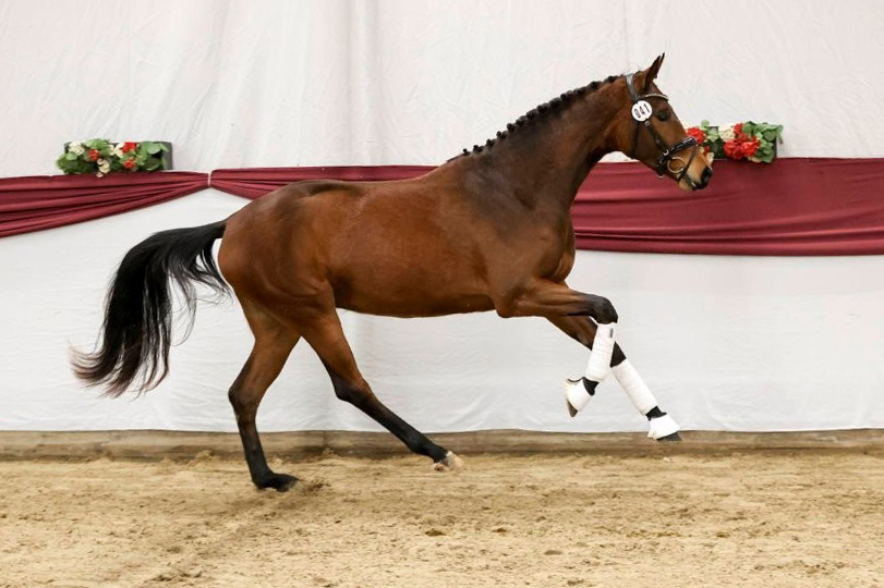 Siegerstute dressurbetonten Deutschen Sportpferden KN 41 Bella Frida (Bonds/Topas; Z.u.B.: Gerhard Bauer, Gomadingen)