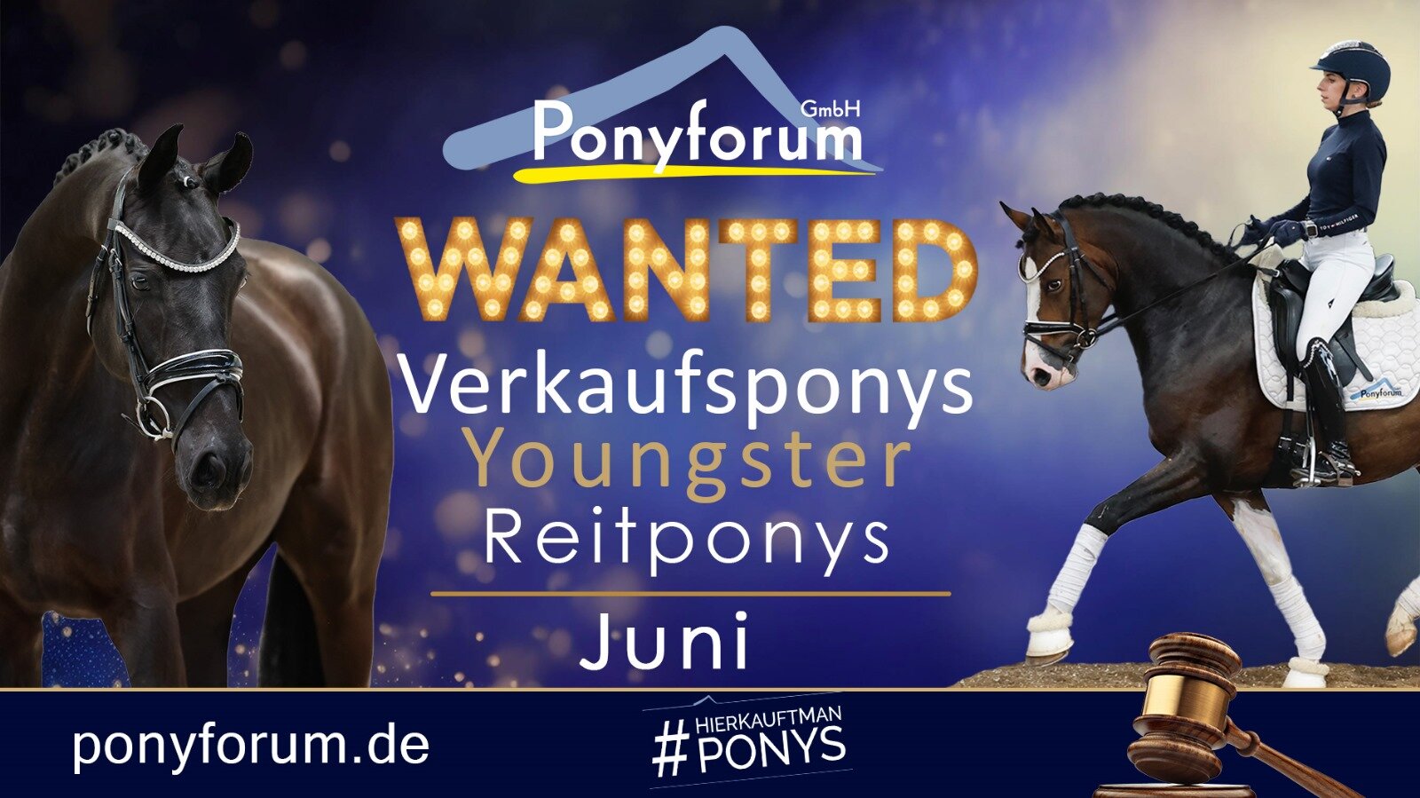 Für die monatlichen Verkaufskollektionen der Ponyforum GmbH werden Verkaufsponys gesucht. Die hohe Nachfrage nach Verkaufsponys bestätigt unsere hervorragende Verkaufsquote, die sich konstant auf über 90% beläuft. Im Juni sind nun eine Reitpony- und eine Youngsterauktion geplant, verkäufliche Ponys können direkt angemeldet werden.