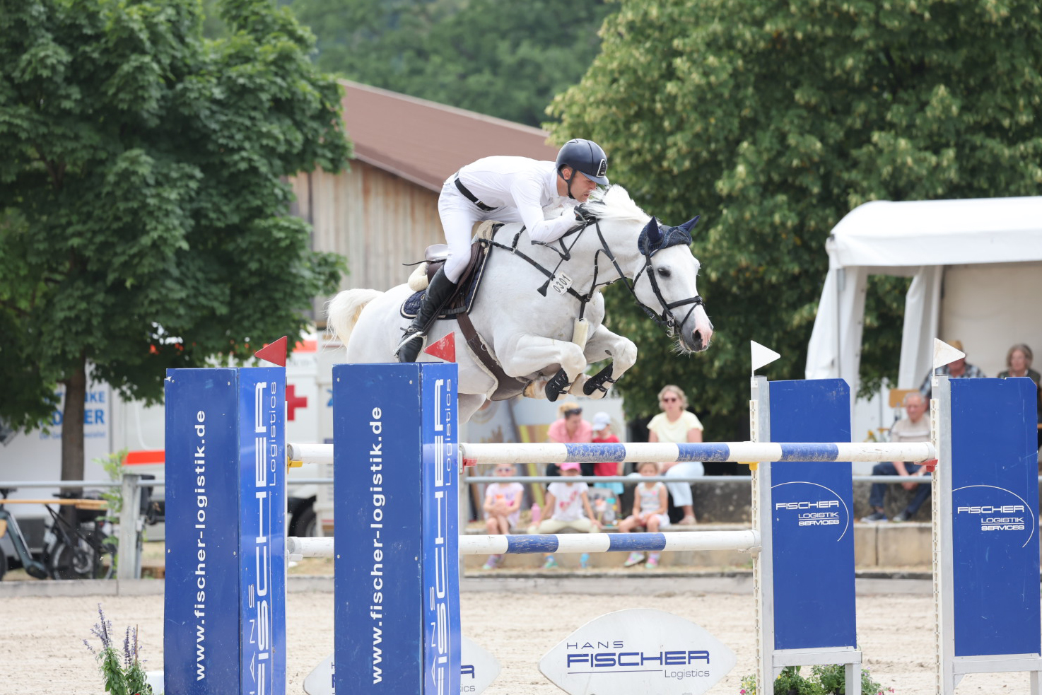 Es war ein Wimpernschlagfinale, wie es spannender kaum hätte sein können! Der Große Preis der Landeschampionate, ein Zwei-Sterne-Springen mit Stechen, bot den Höhepunkt im Weilheimer Springparcours. Mit sieben Paaren im Stechen war Phil Schmauder und Oliver Barthel wieder einmal eine Punktlandung gelungen. Die erste Null-Runde im Stechen ließ ein wenig auf sich warten, doch bei Nico Leber und seinem Erfolgspartner Caslato platzte dann der Knoten. Der Bereiter aus Salzstetten kennt den schneeweißen Schimmelwallach wie seine Westentasche und steuerte ihn gekonnt durch den Parcours. Die Beiden hatten nicht unbedingt die schnellste Zeit aufs Parkett gelegt, blieben dafür jedoch als erstes Paar fehlerfrei und übernahmen damit die Führung. Bis zum letzten Starter hatte es keine weitere Nullrunde gegeben, doch Pia-Luise Baur hatte mit dem Schimmelhengst Doctor Blue noch ein weiteres, heißes Eisen im Feuer. Der Marbacher Gestütshengst springt Häuser und das in einer Manier, die Reiterherzen höherschlagen lässt. So war es wenig verwunderlich, dass der Sohn des Durango VDL fehlerfrei ins Ziel kam. Doch ein Blick auf die Zeittafel verriet: Sie waren wenige Hundertstel zu langsam gewesen. Damit hatte sich Nico Leber seinen allerersten Zwei-Sterne-Sieg eingeheimst, gefolgt von Pia-Luisa Baur auf Rang zwei. Auf dem dritten Platz rangierte Rossen Raytchev im Sattel von Chad Calypso PS. Text: RJ Laura Bräuninger Bilder Doris Matthaes
