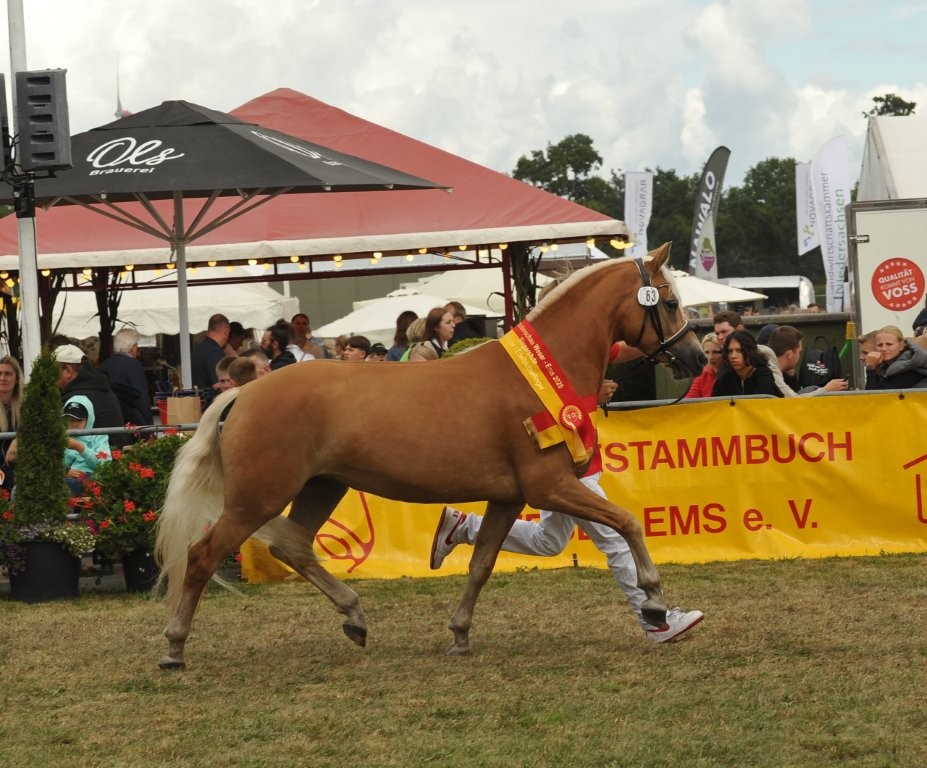 Bei der Elitestutenschau in Weser-Ems am 23.August 2025 gewann in der Abteilung der Haflinger und Edelbluthaflingerstuten die in Baden-Württemberg gezogene Stute Rosa.