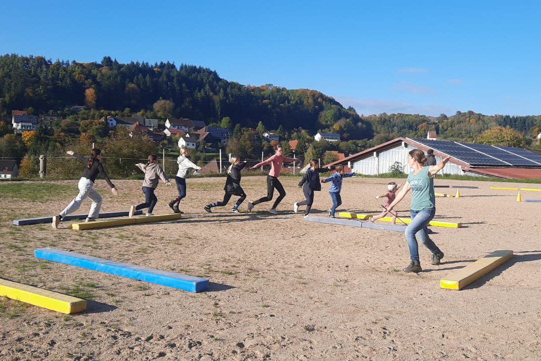Die Jungzüchter wurden von den Betriebsinhabern Simon und Katharina Blattert begrüßt. Simon Blattert erklärte den Teilnehmer die Zuchtgeschichte von den Schwarzwälder Pferden und die Farbvielfalt (Rappe, Schimmel, Brauner und Fuchs). Auch über die gefährdeten Stutenstämme des Schwarzwälder Pferdes haben die Jungzüchter viel Neues erfahren. Nach so viel Information zum Schwarzwälder Kaltblut, wurden dann die Pferden und Ponys von der Weide geholt und für eine Equikinetic und Dualaktivierung Einheit gerichtet. Katharina Blattert zeigte den Jungzüchter die Grundlagen dafür. Jeder durfte dann auch selbst mit den geduldigen Schwarzwäldern und Ponys erste Erfahrungen sammeln. Nach diesem praktischen Teil stärken sich die Jungzüchter beim gemeinsamen Pizzaessen. Zum Schluss bedankte sich Claudia Becherer im Namen der Jungzüchter für den großartigen und informativen Lehrgang bei Familie Blattert. Text: Hannah Stählin/Marie Neumaier