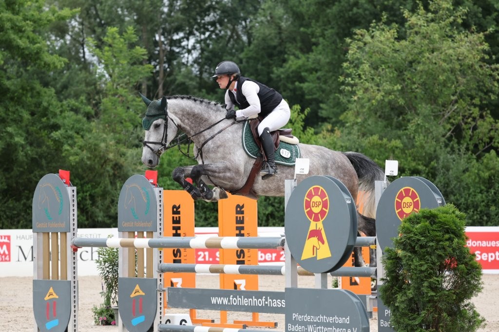Askaryan v. Asca/Little Rock Gold (Z.: Heinz Walz, B.: Haupt- und Landgestüt Marbach) Landeschampion der 4j Springpferdee unter Eva-Maria Lühr