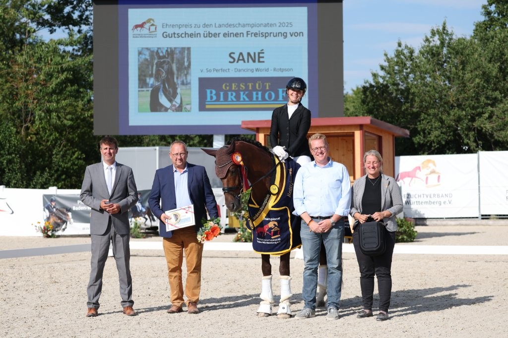 Birkhof’s Sané v. So Perfect/Dancing World (Z.: Johannes Gaab; B.: Gestüt Birkhof) Landeschampion der 4j. Hengste unter Nicola Haug