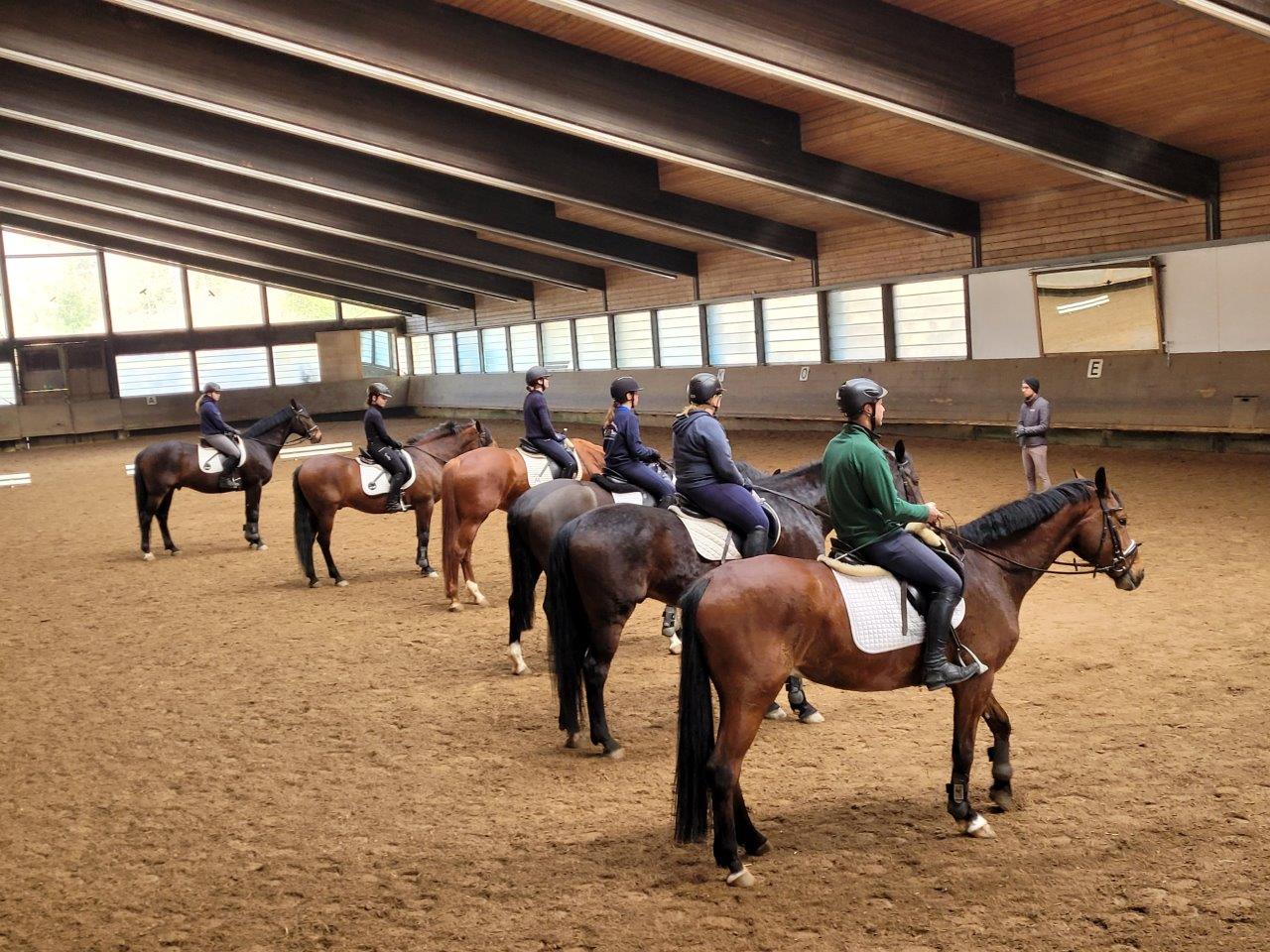 Am Samstagvormittag trafen wir uns im Reitschulheim um die Zimmer zu beziehen. Nachdem alle eingetroffen waren, gingen wir gemeinsam in die Reitschule. Von den gut ausgebildeten Sportpferden und den braven Lehrmeistern konnte jeder profitieren. Nach dem Aufräumen und Versorgen der Pferde übten wir nochmal eine Runde das Vormustern. Abends zauberten wir ein leckeres Abendessen und hatten viel Spaß. Am nächsten Morgen standen wir um 7:00 Uhr im Stall, um die Pferde zu misten und zu füttern. Gestärkt nach einem leckeren Frühstück hatten wir die zweite Reitstunde. Nachdem das Reitwochenende die letzten Jahre nicht möglich war, freuen wir uns umso mehr, dass wir wieder ein gelungenes Wochenende hatten und freuen uns schon aufs nächste Jahr.