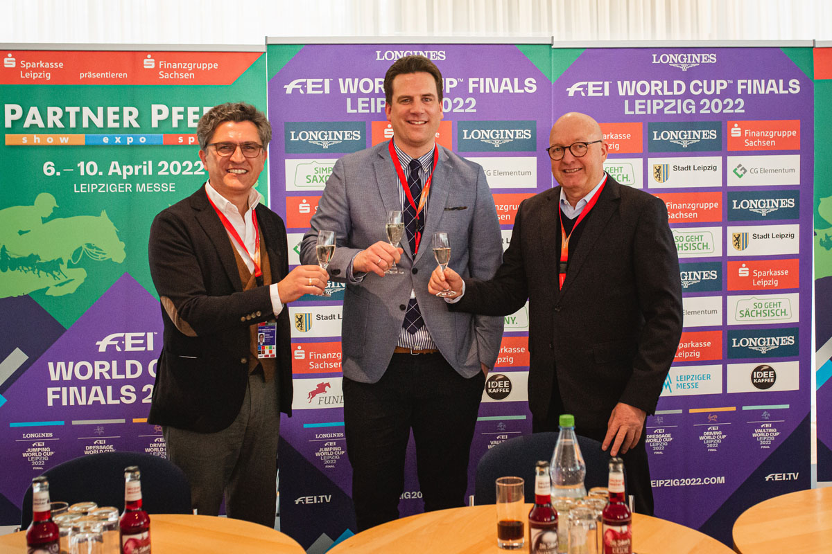 HKM ist neuer Titelsponsor der Bundeschampionate: Soenke Lauterbach (FN-Generalsekretär), Jonas Niemeyer (CEO HKM) und Volker Wulff (EN GARDE Marketing).