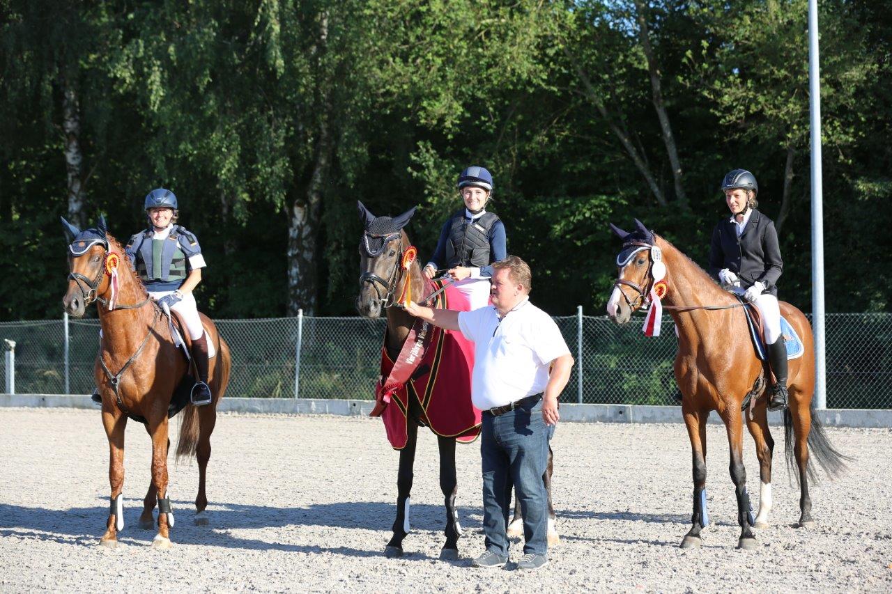Bei den 4jährigen gingen sogar alle Medaillen an Deutsche Sportpferde aus Baden-Württemberg: Sieger wurde Drogon S (Daybreak M/Kaiserkult; Z.: Ute Schmierer) mit einem Ergebnis von 44,3 Punkten, wobei insbesondere die Note 9,5 für den Geländeteil herausragte. Der leichtfüßige Wallach wurde von der Tochter der Züchterfamilie, Sarah Schmierer, bestens ausgebildet und in Szene gesetzt. Auf Platz zwei rangierte der Fuchshengst Hey Lucky Stan (Hickstead White/Stan the Man xx; Z: Freistedt/Schmid GbR, Urspring), der sich unter dem Sattel von Julia Schmid höchst rittig und ebenfalls mit exzellentem Gelände (9,2) zeigte. Die Bronzemedaille ging mit 41,3 Punkten an die talentierte Mon Cherie ZGE (Monte Bellini/High Spirits; Z.: Harald Engelberth), geritten von Anna Sophie Engelberth. Auffallend war auch ein Kandidat der kürzlich zum ersten Mal durchgeführten DSP Eventers Auktion: unter seiner neuen Besitzerin Julia Stiefele konnte Atreju (Asagao xx/Corlensky; Z.: Erik Schröder) beim ersten gemeinsamen Turnierauftritt glänzen und sicherte sich durch ausgeglichene Ergebnisse in allen drei Teildisziplinen den vierten Platz.