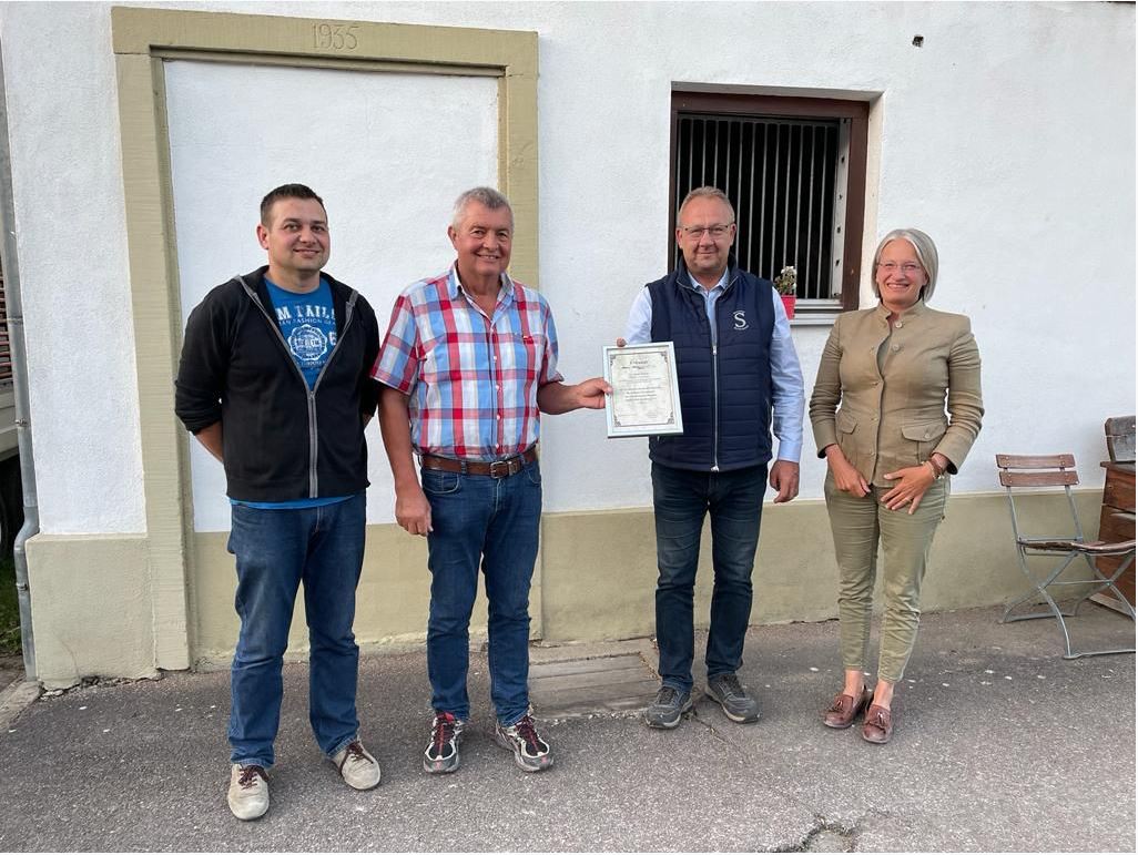 Bei der Hocketse des Pferdezuchtvereins an der Servicestation in Rindelbach am 8. Juli, wurde Josef Mayer aus Jagsthausen, aus den Händen des 1. Verbandsvorsitzenden Edwin Schuster, die Goldene Ehrennadel des Pferdezuchtverbandes Baden-Württemberg verliehen.
