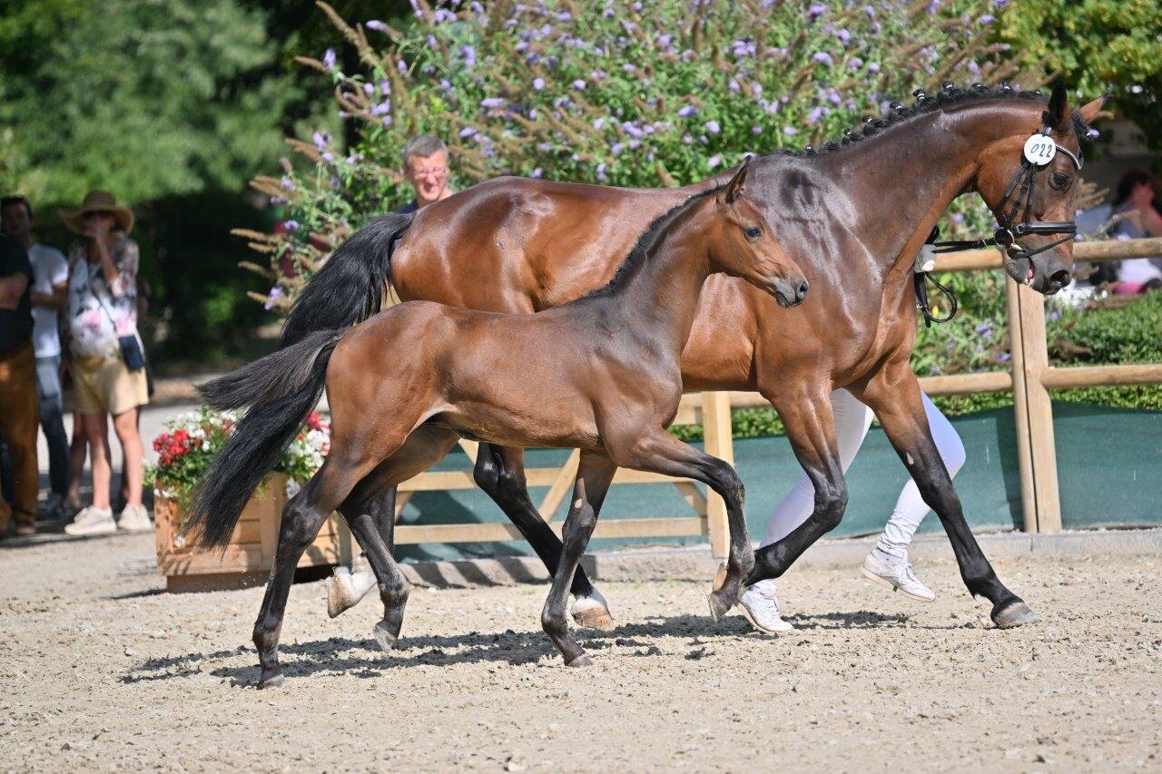 Bestbezahltes Stutfohlen war die Nummer drei im Preisranking, eine Chacco Chacco-Tochter aus einer Mutter von Quicksilber-Saccor, die dem DSP-Stamm der Wasserrose zuzuordnen ist. Die Mutter brachte unter anderem auch die achtjährig bereits in S**-Parcours erfolgreiche DSP Lyjin P. Gezogen und ausgestellt wurde die Dunkelbraune von der Pietscher Gbr. Aus der im sachsen-anhaltinischen Kalbe/Milde ansässigen Erfolgszucht stammen zahlreiche auch auf internationalem Parkett erfolgreiche Pferde und gekörte Hengste wie beispielsweise DSP Araldik. 12.700 Euro wurden online geboten.