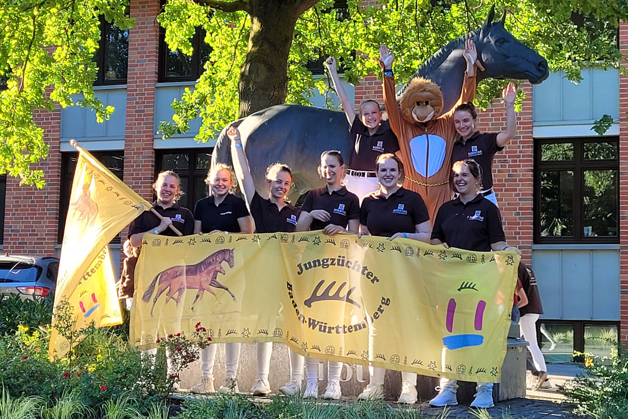 Beim 24. Bundesjungzüchterwettbewerb, welcher Anfang August vom Westfälischen Pferdestammbuch in Münster-Handorf ausgeführt wurde, konnten die Baden-Württembergischen Jungzüchter sich im guten Mittelfeld behaupten. Das Team bestand aus erfahrenen und neuen Jungzüchtern, für die es auf den nationalen Wettbewerb ging. Auch unser Löwen-Maskottchen „Winnie“ hat das Team über das Wochenende unterstützt.