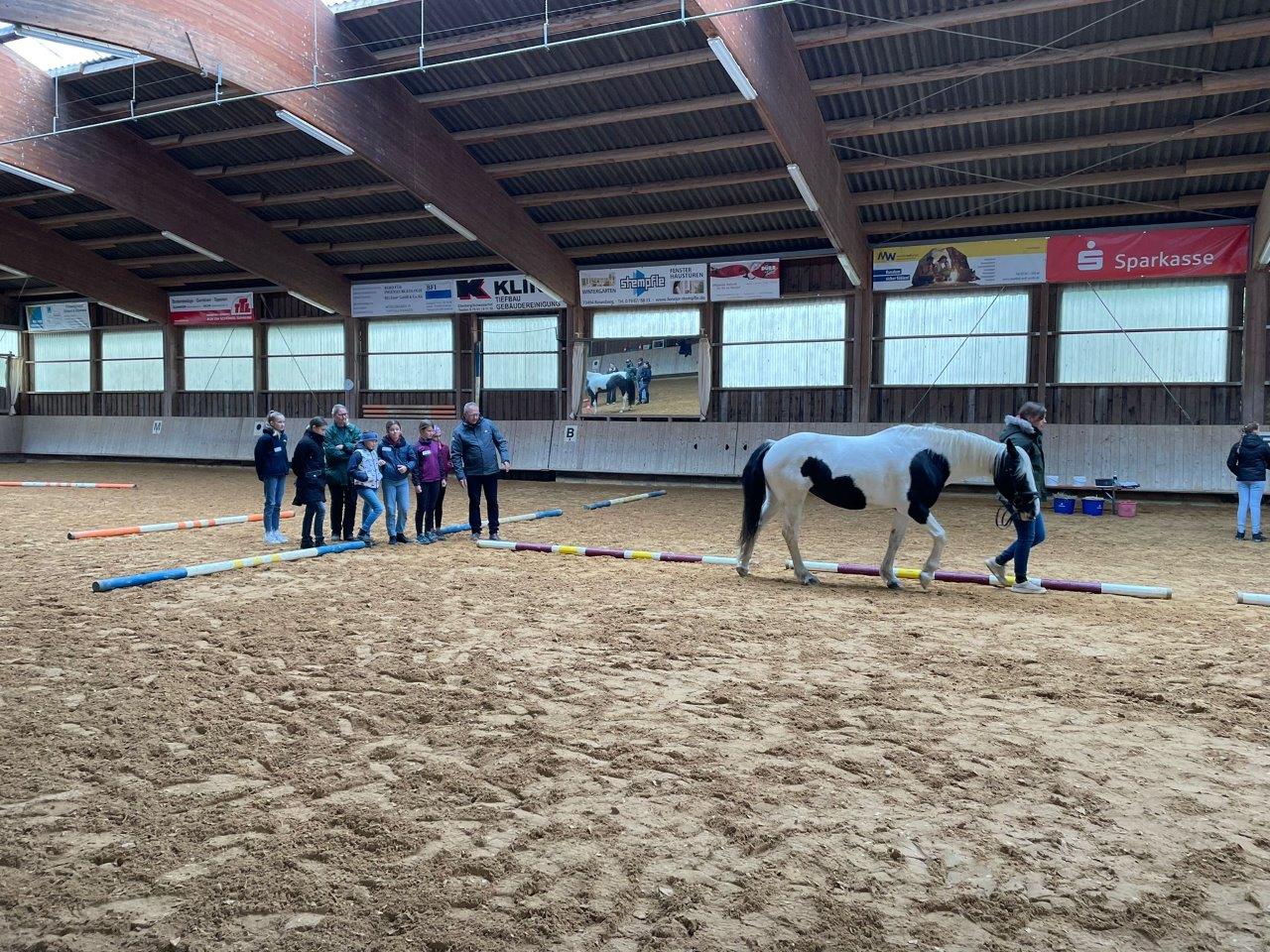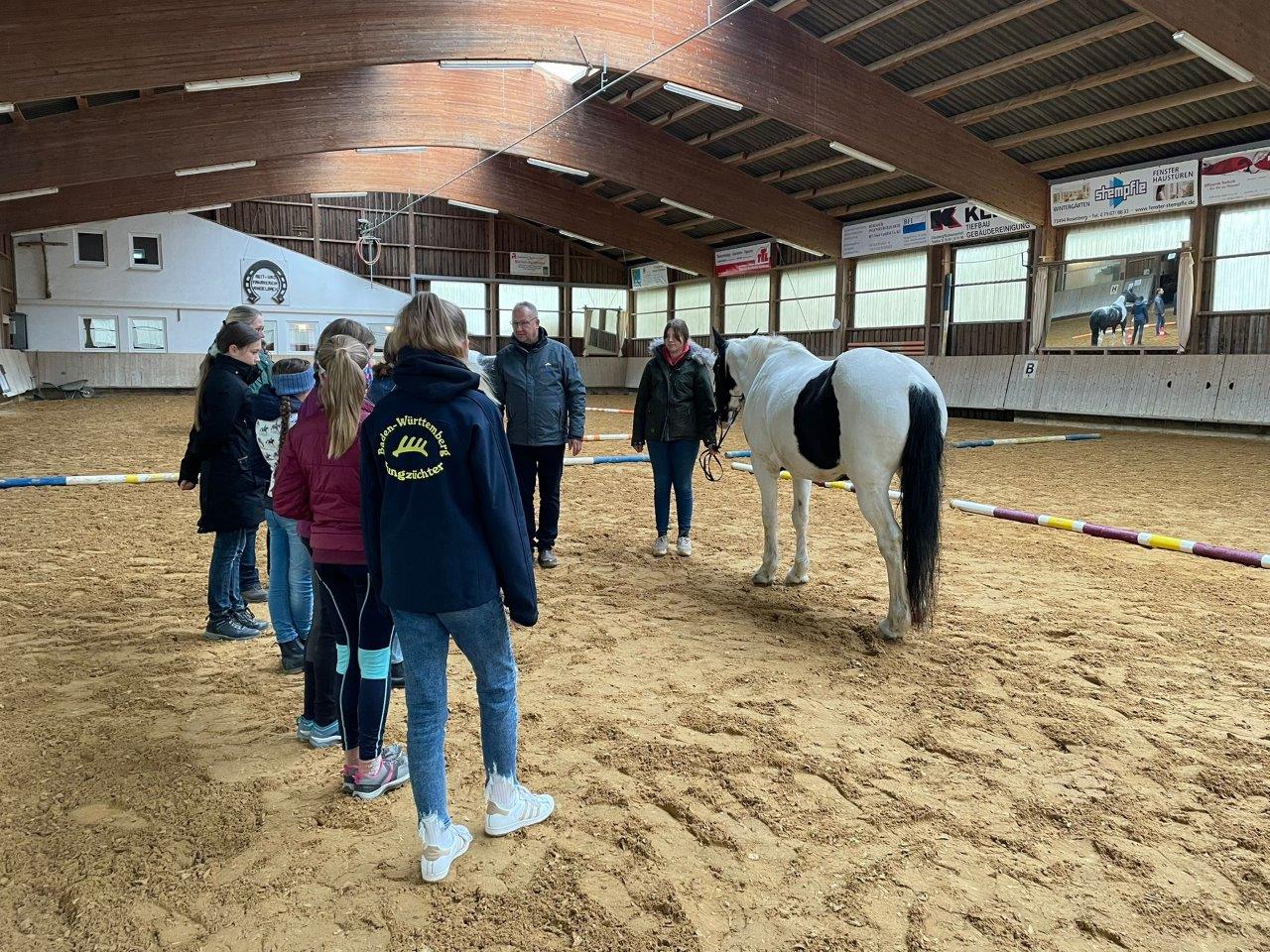 20 motivierte Kinder und Jugendliche lernten an 3 Stationen die Jungzüchterarbeit kennen. Edwin Schuster, Vorsitzender des Pferdezuchtverband Baden-Württemberg e.V. erklärte alles Wissenswerte rund um die Exterieurbeurteilung beim Pferd. Auf der Dreiecksbahn übte Dean Mihaljev das richtige Vormustern und Vorstellen eines Pferdes mit den Kindern und Jugendlichen. Der dritte Teil ist ein Theorie-Teil rund ums Pferd, in dem sich die Mitarbeiterin des Pferdezuchtverband Baden-Württemberg e.V. Sarah Heß bestens auskennt. In drei Gruppen, unterteilt nach Alter, absolvierten die Kids diese Stationen mit Bravour und vor allem ganz viel Spaß. Als Erinnerung und zur Motivation zum weiter machen bekamen alle Teilnehmer eine Urkunde von Edwin Schuster überreicht.