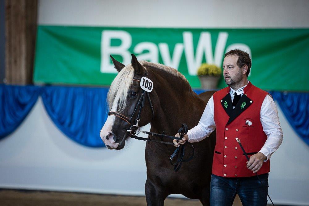 Das größte Ausstellungslot stellten die Rasse Süddeutsches Kaltblut mit 41 gemeldeten Stuten und 10 Hengsten. Den Siegerhengst stellte die Zuchtgemeinschaft Hollinger und Ober, Traunstein mit dem gang- und typstarken Venturin von Veitel/Solero, der Reservesieg ging an den siebenjährigen Venberg-Sohn Verry, gezogen bei Raimund Schützinger und im Besitz von Florian Wörndl, Bernau. Beide Hengste wurden mit der Bundesprämie ausgezeichnet. Als Bundessiegerin der jüngeren Stuten ging die Oxana, eine Tochter des Volvo/Schachen aus der Zucht von Josef Steinle, Diessen hervor. Reservesiegerin in dieser Klasse wurde Monamour von Samuel/Garant aus dem Züchterstall Xaver Büchl, Rottach-Egern. In der Klasse der älteren Stuten freute sich Josef Bachmair, Rottach-Egern über die Siegerschärpe für seine Monarchin von Samuel/Natal vom Oberland. Bachmair´s stellten 2017 bereits die Sieger- und Reservesiegerstute. Als Reservesiegerin bei den Altstuten ging die Stute Pipa von Regent/Normano aus dem Züchterstall Vitus Gasteiger hervor. Auch diese Stuten erhielten eine Bundesprämie. Klaus Ebert, Abtsgmünd war mit seiner Vrieda von Simba/Vigo aus dem Zuchtgebiet des Pferdezuchtverbandes Baden-Württemberg erfolgreich, er durfte mit einer Bundesprämie nach Hause reisen.