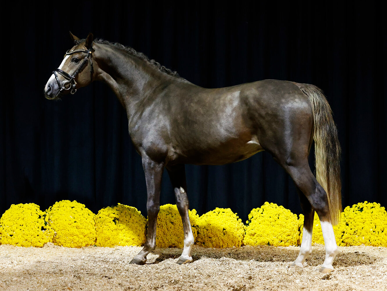 Preisspitze der aktuellen Kollektion war wieder einmal ein Pony aus dem Zuchtgebiet Weser Ems! Der zweijährige Dunkelfuchshengst Counterstrike v. Celebration WE / Can Dance erzielte 12.500,00€. Christian Jaspers aus Westerstede züchtete den ganggewaltigen Youngster, unser Stammkunde Jan Wollesen entdeckte Counterstrike auf unserer Fohlenauktion und stellte ihn nun zwei Jahre später erfolgreich aus! Und auch die zweite Preisspitze, der Palominohengst Zauberkönig, wurde von Jan Wollesen ausgestellt – ebenfalls entdeckt in unseren Fohlenlots! Dieser enorm typstarke Junghengst, abstammend von Nilanthoeve´s Zippo / Flipper d´Elle wurde von Jörg Dobrowolski gezogen, ebenfalls im Zuchtgebiet Weser Ems. Mit 9.500,00€ wurde die Stute Daily Dancing v. Dancing Fox / Daily Pleasure WE zugeschlagen! Die elegante Fuchsstute mit dem verheißungsvollen Pedigree, gezogen vom Gestüt Katharinenhof in Großmaischaid, wechselt zu einer erfolgreich Dressurausbilderin in Norddeutschland. Die dreijährige XL Stute Nana Mouskouri HW, gezogen vom Hof Wohlers aus dem Zuchtgebiet Hannover, wechselte für 9.100,00€ den Besitz. Die Stute stammt ab von Genscher / Don Davidoff und wurde im Sommer 2. Reservesiegerstute der Elitestutenschau des Hannoverschen Ponyverbandes.
