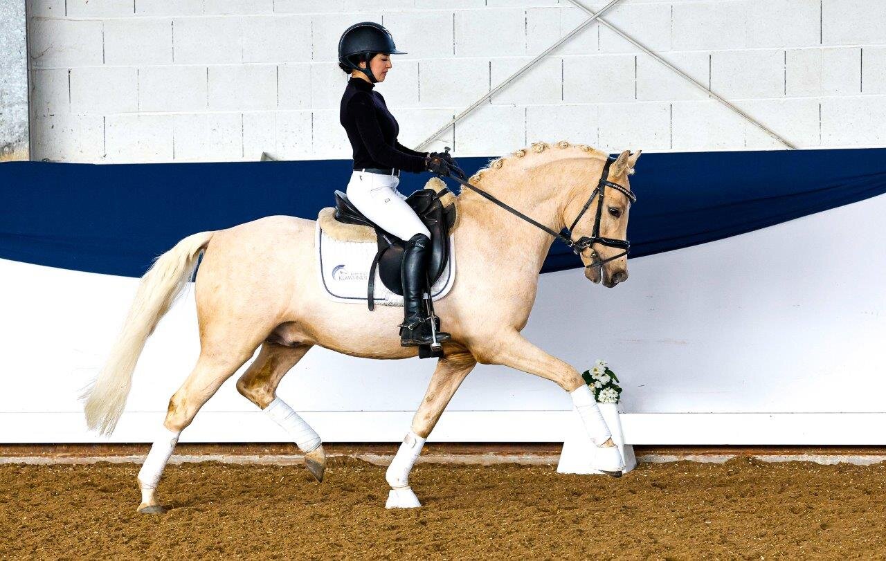Mit 41.000,00€ avancierte der Palominohengst Cyan WE aus dem Zuchtgebiet Weser Ems zur Preisspitze. Der Fünfjährige, abstammend von Celebration WE – Donnerwetter und gezogen von Lukas Fischer aus Emstek, konnte auf dem Bundeschampionat schon den Vizetitel gewinnen und wurde im Rahmen der Weser Emser Körung zum 1. Reservesieger gekürt! Cyan WE begeisterte mit seinen einzigartigen Rittigkeits- und Charakterwerten und setzte sich klar an die Spitze des Auktionsfeldes. Er wird zukünftig bei einer erwachsenen Reiterin aus Hessen beheimatet sein und als Dressurpony weiter ausgebildet.