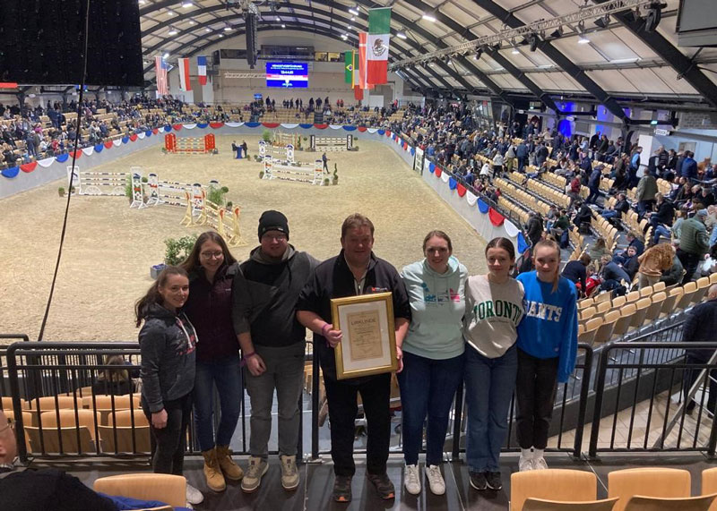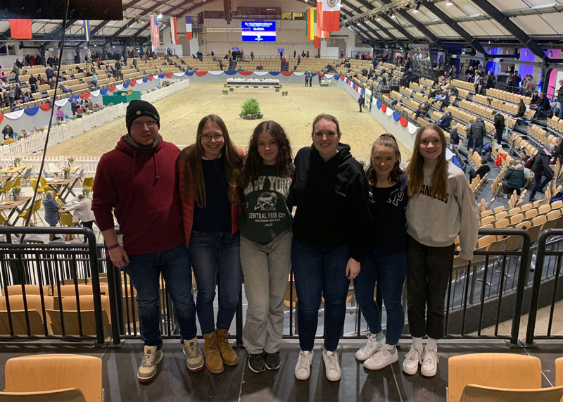 Nach der anschließenden Auktion zog der Jahrhunderthengst Casall die Aufmerksamkeit auf sich. Der 24 Jahre alte Hengst zeigte sich Topfit, und wir freuten uns, dass wir solch eine „Legende“ live miterleben durften. Der lange und beeindruckende Tag endete mit einer Züchterparty, wo auch unser immer gut gelauntes Jungzüchter-Team des Pferdezuchtverbandes Baden-Württemberg e.V. nicht gefehlt hat. Die traditionelle Holsteiner Hengstvorführung am Sonntag war dann noch ein Highlight des Ausfluges. Die Holsteiner Verbandshengste wurden den Züchtern am 12. Februar traditionsgemäß in altersgemäßen Parcours’ in Neumünster präsentiert. Von A wie Agamemdon xx bis Z wie Zuccero wechselten sich die Vererber im Rund der Holstenhallen ab. Tjark Nagel begleitete die Vorstellungen mit Trainings-Charakter und erläuterte, wie die jungen Pferde ankommende Aufgaben herangeführt werden.