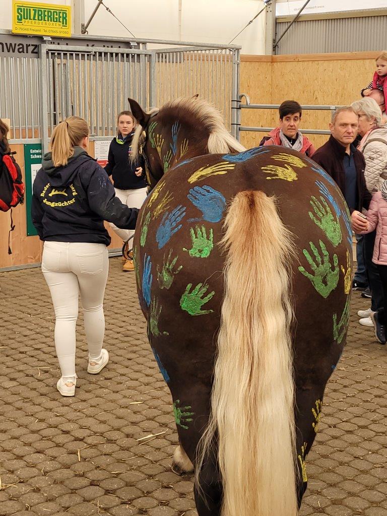 Auf dem Landwirtschaftlichen Hauptfest auf dem Cannstatter Wasen waren wir an 3 Tagen im Einsatz. Wir stellten Kindern Fragen Rund ums Pferd und wer diese richtig beantwortete, durfte einen Handabdruck auf das Pferd machen.