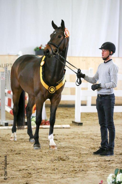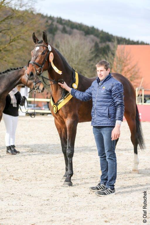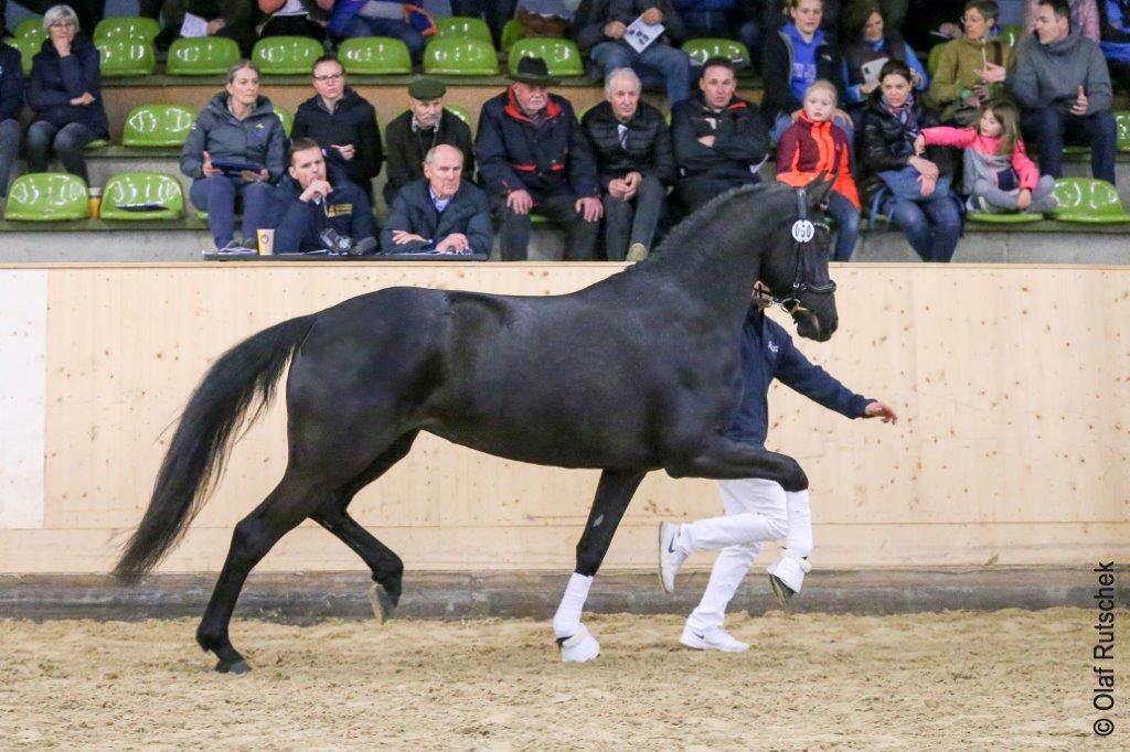 Bei den dreijährigen Dressurpferden konnte sich Kurt Fink aus Ulm über einen Doppelsieg freuen. Seine beeindruckende „Valentina“ (Viva Gold/Don Schufro) tanzte nur so durch die Halle und erreichte ein Endergebnis von 8,38. Ihre Stallkollegin „Valea“ (Vivino/Sandro Hit) stand ihr hinsichtlich Typ und Bewegungsqualität kaum nach und sicherte sich mit 8,03 die silberne Schleife. Beide Stuten wurden vom Ausbildungsstall Harscher bestens in Szene gesetzt.
