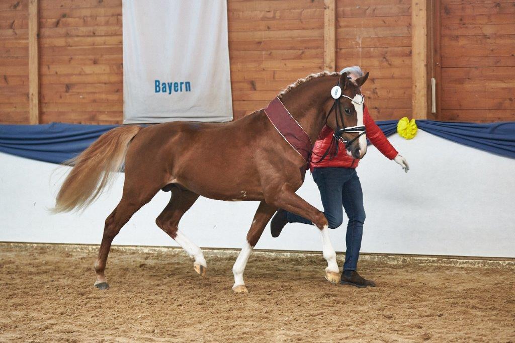 Als Bewegungskünstler muss der erste Reservesieger der Sportponyrassen als auch gleichzeitiger Rassesieger der Deutschen Reitponys herausgestellt werden. Gezogen bei der Zuchtgemeinschaft Hinnemann u. Verfürth in Rheinberg, nun im Besitz von Josy Schultze aus Hagen, konnte dieser Nachwuchsvererber vor allem im Trabe brillieren. Der Sohn des Neverland WE zeigte sich in den schwungvollen Grundgarten stets sicher im Takt mit viel Raumgewinn und Mechanik im Vorderbein sowie aktiv unterfußendem Hinterbein bei steter Bergauftendenz.