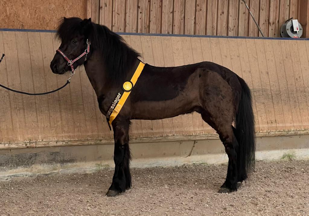 Gekört wurde auch Hallvarður vom Alpenhof von Bliki fra Hjardarholti für den Bayerischen Zuchtverband für Kleinpferde und Spezialrassen, den Jana Füss aus Isny vorstellte. Ein sehr freundlicher, gut entwickelter 5-Gang Junghengst mit viel Naturtölt, der mehr Lauffreude zeigen könnte. Er erreichte mit 8,09 die höchste Gesamtnote (Ext. 7,99/Int. 8,13; Gänge 8,14).