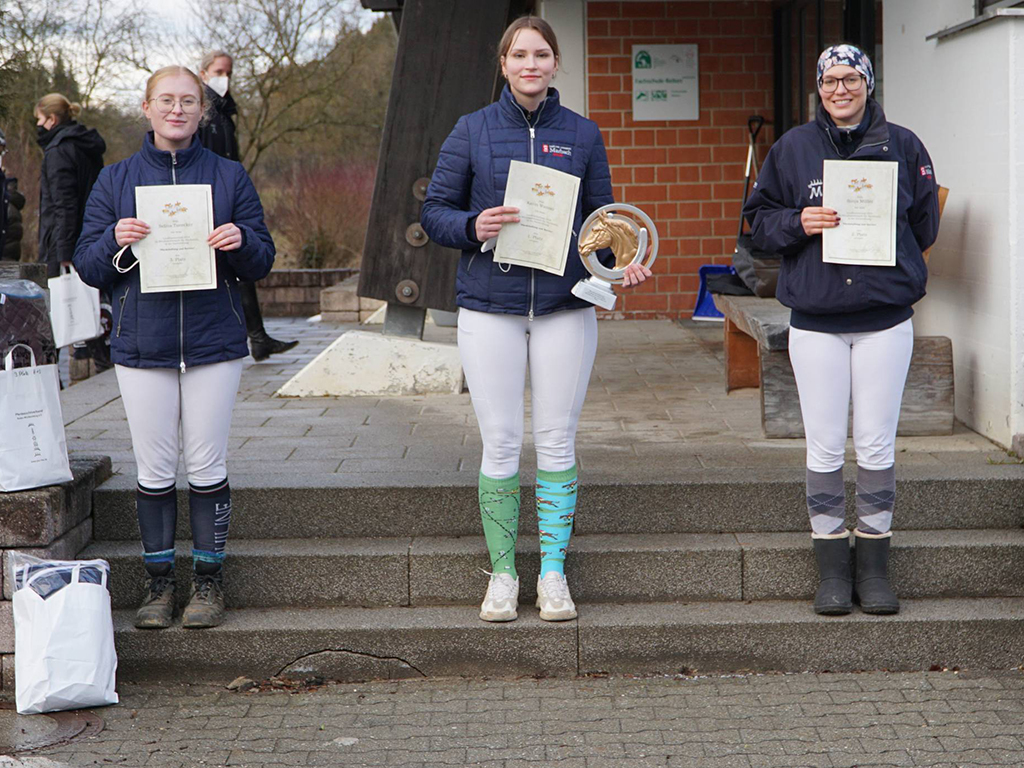 Die Sieger und Platzierten der Fachrichtung Pferdehaltung und Service freuten sich über den erzielten Erfolg. Von links nach rechts, Selina Tanecker (Platz 3), Karin Wanner (Siegerin), Sonja Müller (Platz 2).