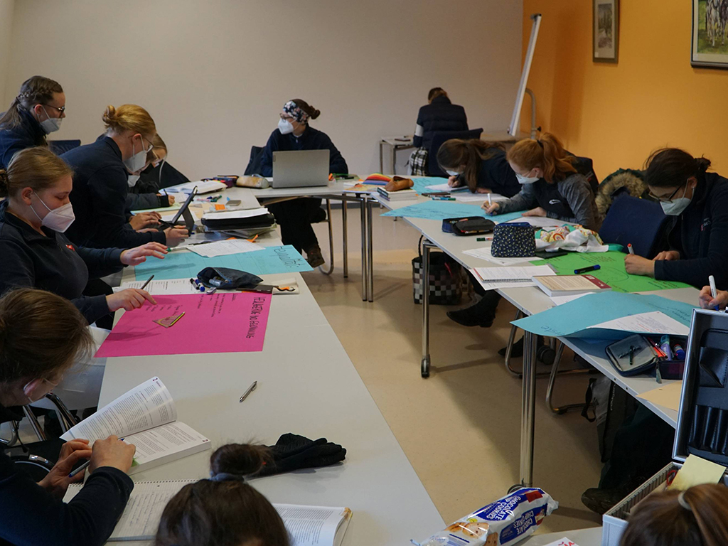 Als weitere Teilaufgabe war ein zugelostes Thema zu bearbeiten und zu präsentieren. Dabei kam es neben der fachlichen Richtigkeit der Inhalte auf die Sprache, den Einsatz von Medien sowie die Originalität an. Da Pferdewirte einen typischen Dienstleistungsberuf ausüben, sollte dabei immer auch die Kundenberatung berücksichtigt werden.