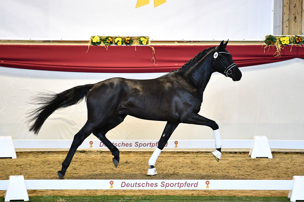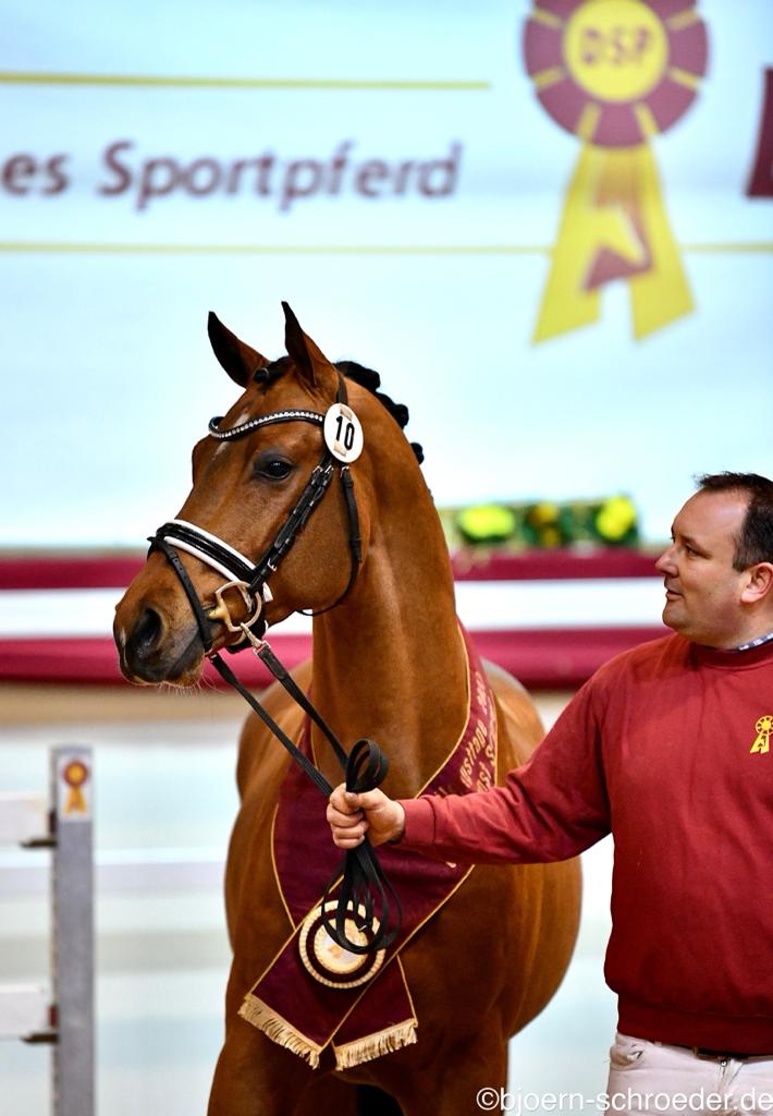 Insgesamt wurden acht Hengste der Dressurkollektion mit einer Prämie ausgezeichnet: Neben dem Siegerhengst waren das Söhne von Benicio, Fair Game, Fürst Samarant, Maracanà, Top Gear, Vitalis und Zackerey. Der Sohn des Benicio, von der Zuchtgemeinschaft Bernau in Rosian gezogen und im Besitz der Sportpferde Beckmann GmbH, vereint auf der Mutterseite bestes DSP-Blut. Die Mutter ist eine Staatsprämienstute vom DSP-Prämienhengst Belantis I aus einer Tochter des DSP-Eltehengstes Quaterback. „Überragende Grundgangarten, ausdrucksvoller Trab und überragender Schritt“, so das Urteil der Körkommission über den Fuchs.