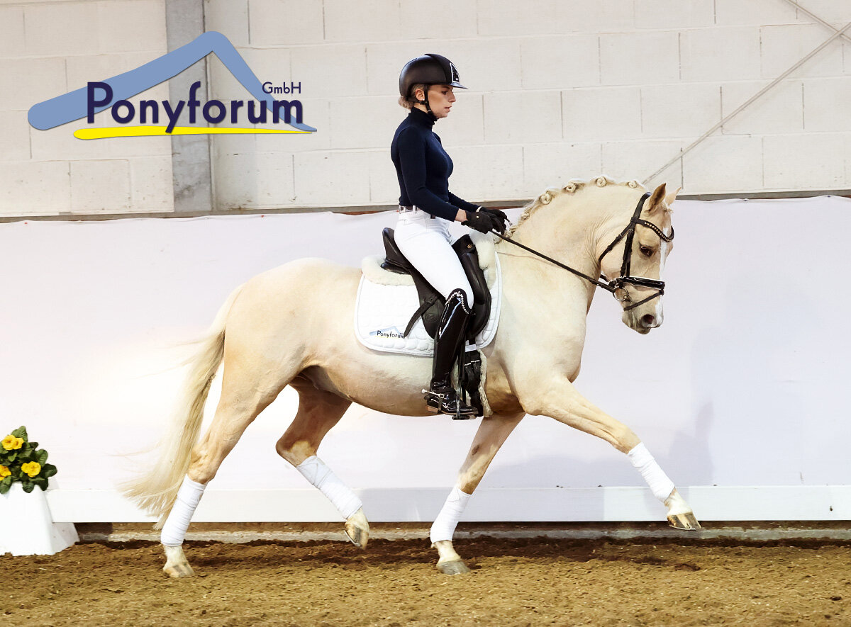 Den Spitzenpreis von 30.000,00€ erzielte der sechsjährige Weser-Emser Palominowallach Golden Prince WE von Golden West – Batida de Coco aus der Zucht von Hermann Jaspers. Der ehemals gekörte mittelrahmige Wallach fand über die Ponyforum Hengsttage seinen Weg zu Mareike Mimberg, die ihn vierjährig zur Bronzemedaille auf dem Bundeschampionat ritt. Inzwischen ist das Pony erfolgreich bis Dressurpferdeprüfungen der Klasse L platziert und wird nun seinen Weg in Baden-Württemberg bei einer talentierten Nachwuchsreiterin fortsetzen.